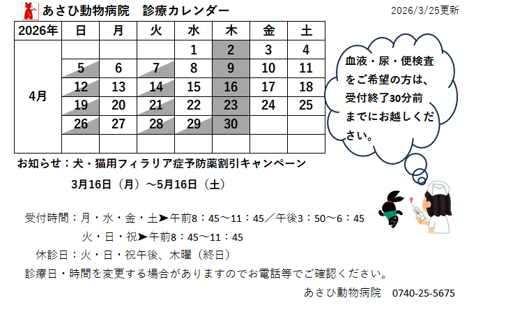 4月の診療カレンダー